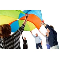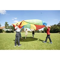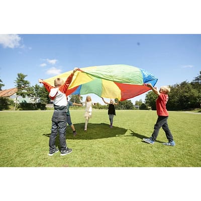 Vďaka svojej veľkosti a výrazným farbám umožňuje množstvo skupinových hier, ktoré rozvíjajú motorické schopnosti, tímovú spoluprácu a orientáciu v priestore. Padák je vyrobený z odolného a bezpečného materiálu, vhodného na vnútorné aj vonkajšie použitie.