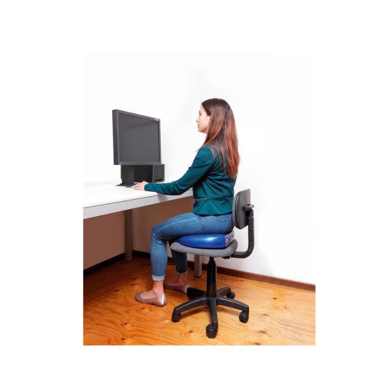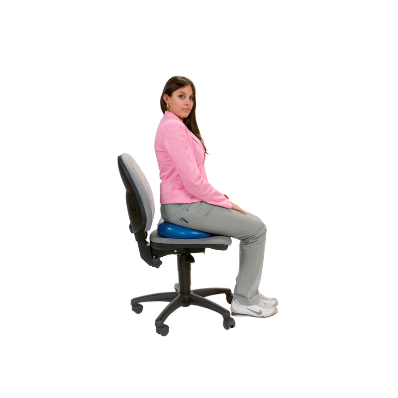 Sit On Air je dynamický nafukovací vankúš, ktorý má vďaka svojmu klinovitému tvaru dvojité využitie. Keď je rovná hrana otočená k operadlu stoličky, pomáha udržiavať správne držanie tela, pretože aktivuje svaly jadra, ktoré podopierajú chrbticu. Keď je otočená k prednej časti stoličky, umožňuje mierne zdvihnutie nôh v uvoľnenej polohe na sedenie. Toto zariadenie napodobňuje dynamický pohyb cvičebnej lopty pri sedení a poskytuje rovnaké priaznivé účinky. Nafukovaním si môžete jednoducho nastaviť úroveň stability sedadla.